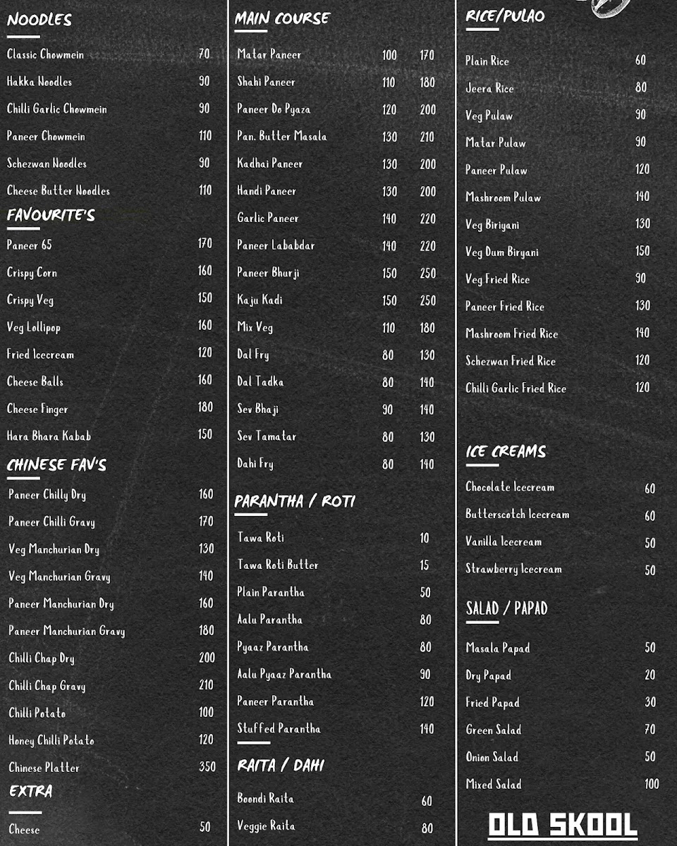 Welcome to Old Skool Cafe Kukas, a delightful haven tucked in the heart of Kukas, Jaipur. This charming cafe boasts a menu that celebrates a mix of classic flavors and contemporary cuisine. From their creamy Ice Creams — including rich Chocolate and refreshing Strawberry varieties — to a tantalizing array of Chinese favorites like Paneer Chilly and Veg Manchurian, there's something for every palate.